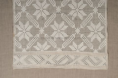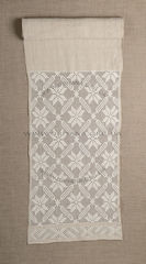 Рушник (Полтавська обл.) вишитий нитками білого кольору в 2015 році, орнамент геометричний - решітка з восьмикутними зірками, "S"-мотив. Серія «Повернення».
